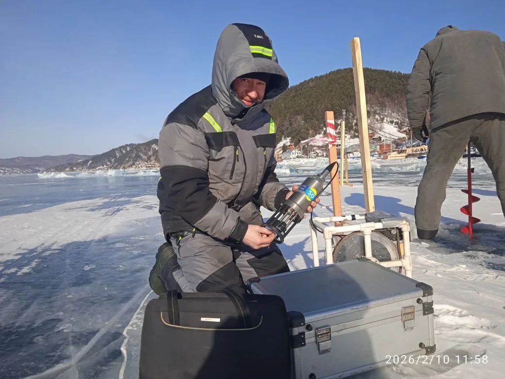 23 января 2026 года сотрудники Лимнологического института СО РАН приступили к выполнению программы зимних экспедиционных исследований. Старт полевого сезона начался в рамках новой темы государственного задания «Исследование горизонтального и вертикального водообмена в озере Байкал, взаимосвязи с геологией дна, притоком поверхностных вод и атмосферными воздействиями, влияние на пространственное распределение пелагобионтов». Работы, проводимые лабораторией гидрологии и гидрофизики, начались с постановки специализированного оборудования для изучения тонких физических процессов, происходящих в период ледообразования, в частности конвекции при вымораживании солей из ледового покрова. Для детального изучения этого явления учеными подо льдом озера был развернут целый комплекс приборов, в состав которого вошли: